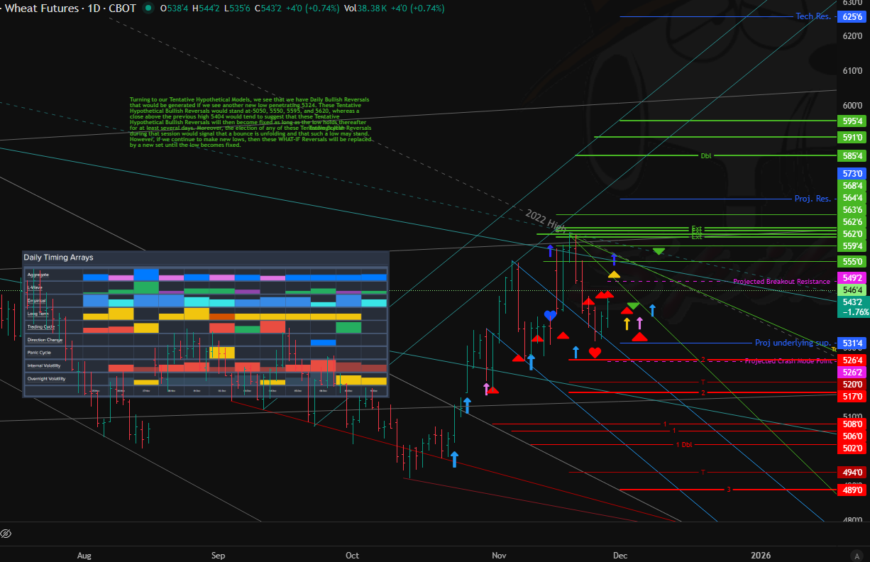 The top line of the array is suggesting that there will be chop ahead with the alternating colors... If the market can close over the Intraday Projected Resistance point then we will likely go up again on the next bar.